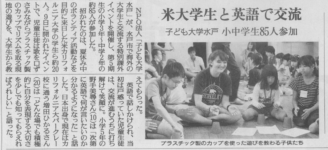 8月9日実施した「1Day English Camp」の様子が、8月15日の読売新聞に掲載されました。